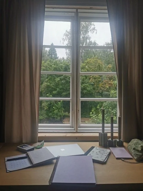 Työlautasellani on ollut nyt teksti, joka käsittelee aikojen loppumista. On ollut ihanaa kuunnella vastapainoksi kanojen kotkotusta, pitää välillä kissaa sylissä. Mennä katselemaan metsää, missä puut kasvavat maailman menosta kiinnostumatta. Vuorosanojani olen harjoitellut milloin ikkunasta sadetta katsellen, milloin meren rannalla. Luonnon kauneus on kuin pitkä halaus.