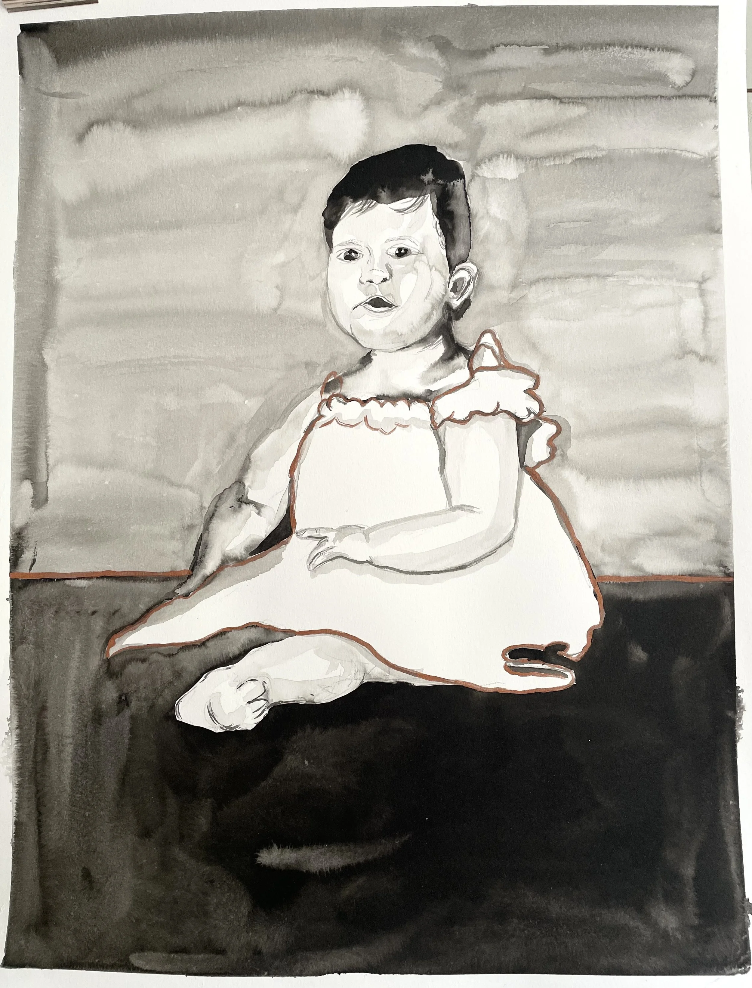 Sekatekniikalla maalauksia paperille, inspiroituneena vanhoista valokuvista.